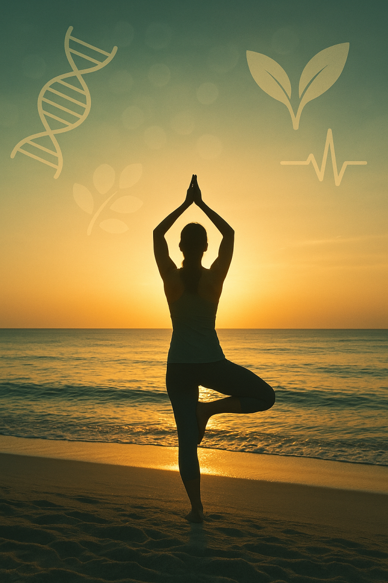 Longevity Stacks: Morning sun + breathwork, mobility + strength (Longevity Yoga), smart fueling, and evening wind-down for deep sleep.